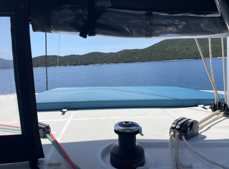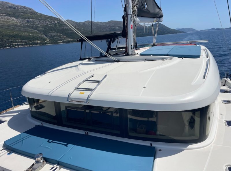 - Komfortní kokpit je otevřený k zádi lodě a moři a najdeme v něm velký jídelní stůl, ke kterému se vejde až 12 osob, odpočinkovou zónu s lehátkem a úplně vzadu "na zrcadle" prostornou lavici k sezení po celé šíři kokpitu.